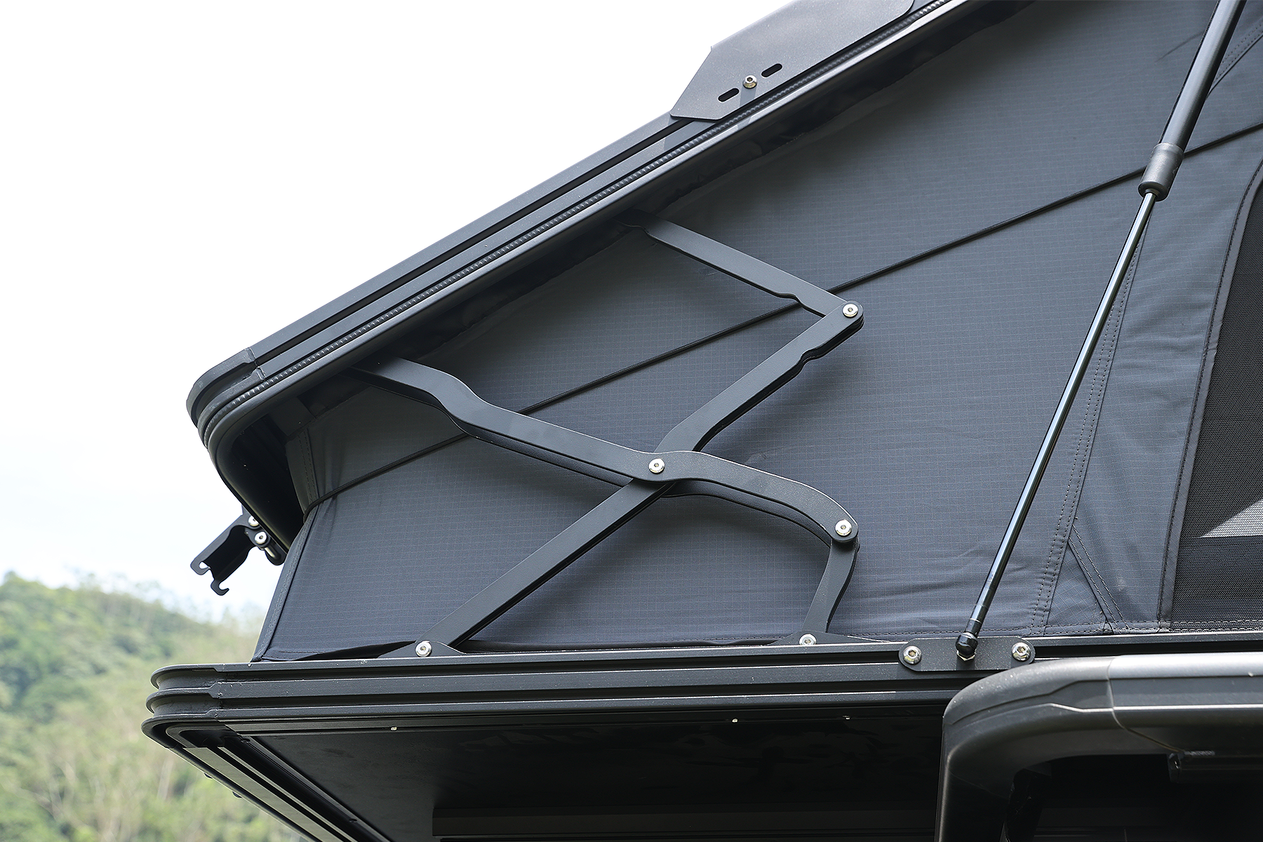 The Kailop Adventurer 1.0 is equipped with hydraulic poles made in Germany. The excellent pneumatic action allows the tent to be fully opened in just approx. 5s, which significantly reduces the set-up time of the tent and makes it easy for you to use the tent outdoors!